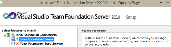 Select Team Foundation Server. At this point we don’t want to install the Team Foundation Build Service (also is recommended to install it in a separate server).